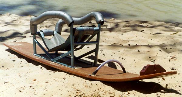 Water ski designed and built by Colin Johanson of Gizmo Bytes. Note block